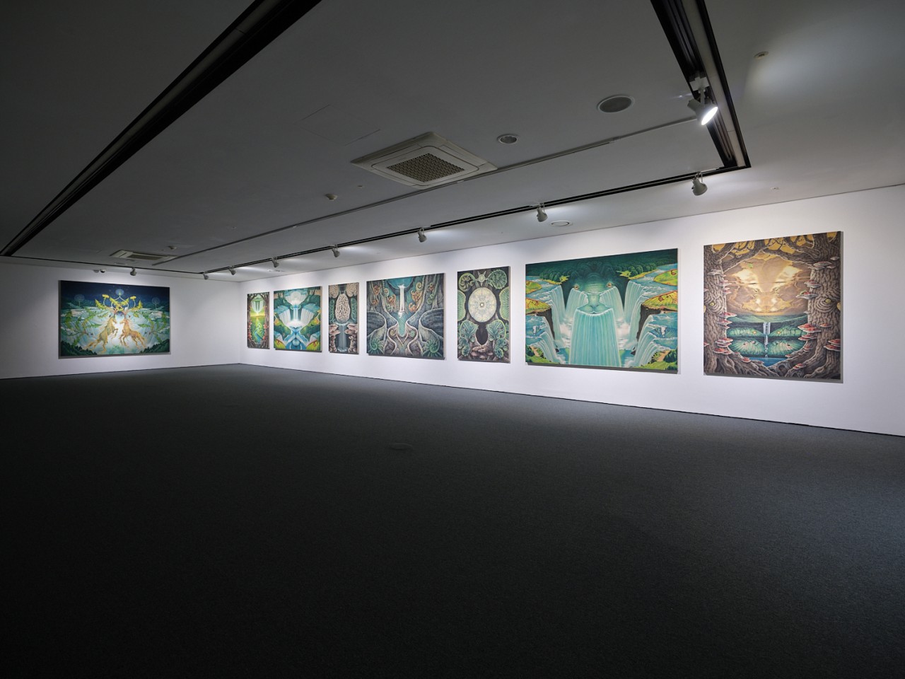 Jang Jongwan has steadily depicted landscapes of what appears to be an ideal natural world and the ecosystem that exists within it. Current exhibition, Mirror Corridor shows another direction in his work while not departing from the trajectory he has been pursuing thus far. To borrow Jang's words, these paintings fold and unfold like a decalcomania technique, forming a single topography. This place is not an actual space-time but rather a virtual world that borrows the form of an ideal realm, maintaining balance within a structure that endlessly repeats and replicates itself. Though his work is not grounded in any clear narrative, it evokes the worldview of a fantasy novel or film. As we know, fantasy novels and films are not entirely newly created worlds but are inevitably recreated based on various elements that constitute today's society, drawing from the history we have built up to now. This is a new reality space that resembles today's reality but has been formed in a different direction. Therefore, his work can be understood as a once....