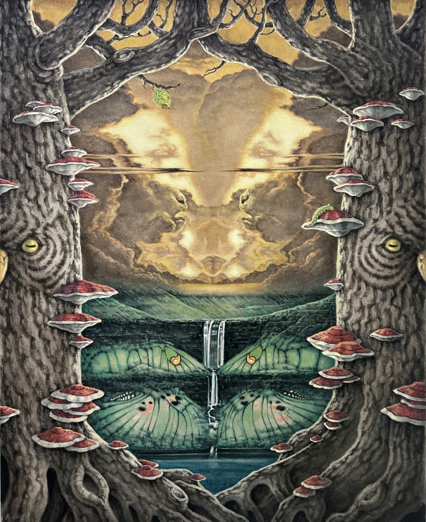 Jang Jongwan has steadily depicted landscapes of what appears to be an ideal natural world and the ecosystem that exists within it. Current exhibition, Mirror Corridor shows another direction in his work while not departing from the trajectory he has been pursuing thus far. To borrow Jang's words, these paintings fold and unfold like a decalcomania technique, forming a single topography. This place is not an actual space-time but rather a virtual world that borrows the form of an ideal realm, maintaining balance within a structure that endlessly repeats and replicates itself. Though his work is not grounded in any clear narrative, it evokes the worldview of a fantasy novel or film. As we know, fantasy novels and films are not entirely newly created worlds but are inevitably recreated based on various elements that constitute today's society, drawing from the history we have built up to now. This is a new reality space that resembles today's reality but has been formed in a different direction. Therefore, his work can be understood as a once....
